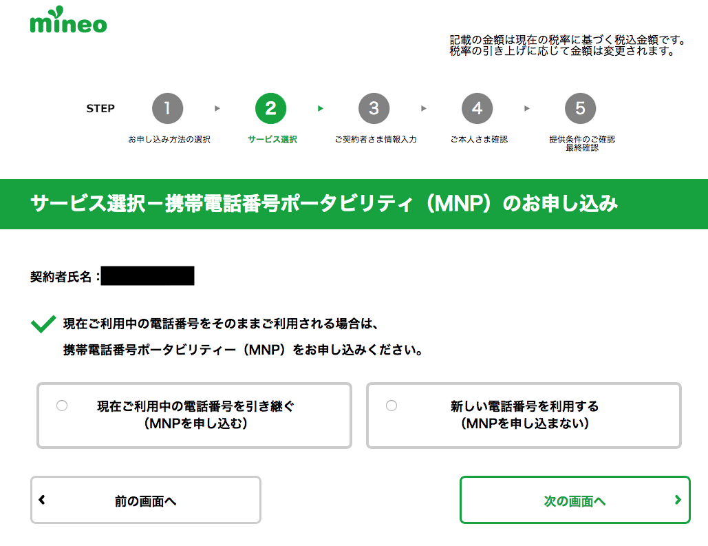 MNPする人は『現在ご利用中の電話番号を引き継ぐ(MNPを申し込む)』をタップかクリック!