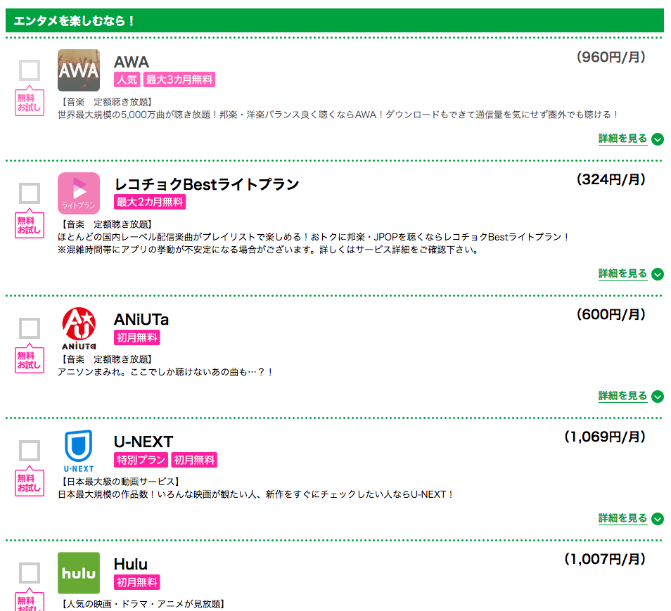 無料で使えるオプションがあったりするけど、3ヶ月だけとか無料の期間が決まったりしてるから、