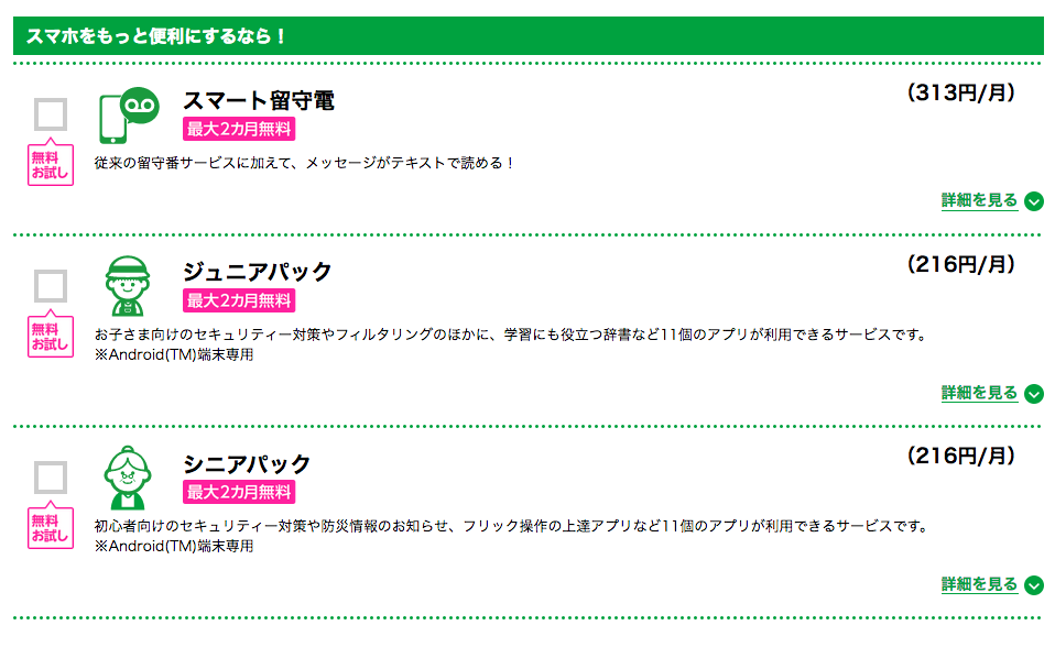 せっかく格安SIMを契約して格安でスマートフォンを使えるようになるけど、無駄なオプションを追加して月々の料金をあげしまわないように注意しようね。