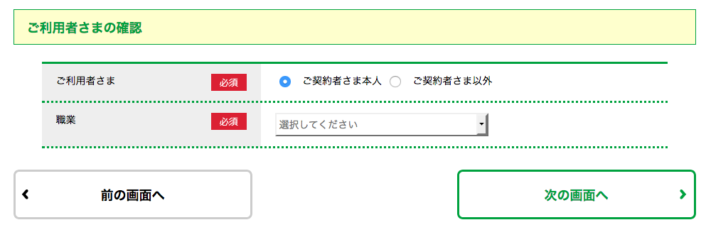 ここで注意するのが、『利用者の名義』でなく『ご契約者の名義』とクレジットカードの名義を同じにすることです。もし同じにしないと、審査に落ちてしまうよ。